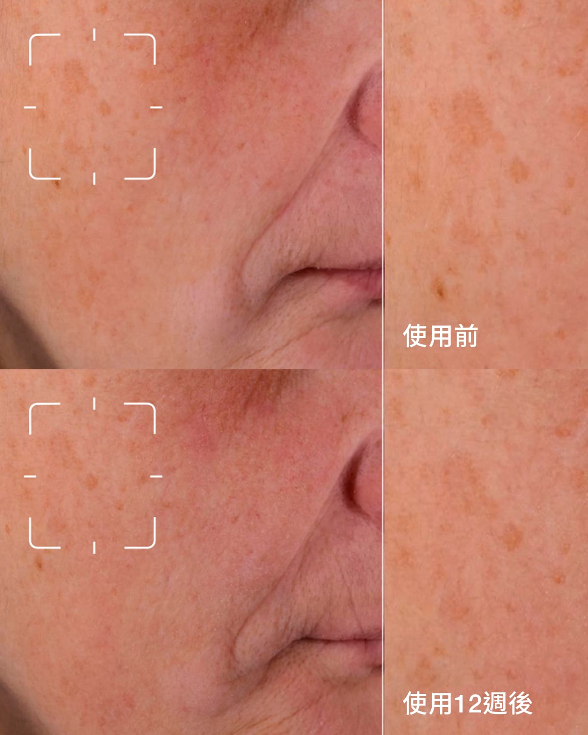 明顯減淡頑固色斑痘印、炎症後色素沉澱、膚色不均、泛黃、暗啞、毛孔粗大等問題。